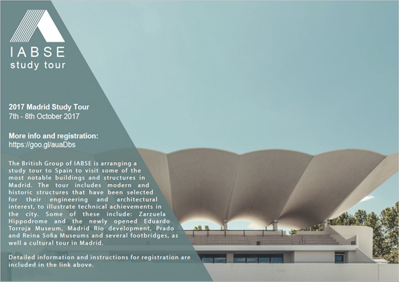 O grupo inglês da IABSE convida os colegas portugueses a participar numa visita de estudo a Madrid, que terá lugar nos próximos dias 7 e 8 de outubro. Esta visita alia uma forte componente técnica com uma vertente cultural, compreendendo visitas ao novo Museu Eduardo Torroja, a diversas passagens pedonais, bem como ao Museu do Prado. A maioria dessas visitas serão acompanhadas por engenheiros espanhóis, alguns dos quais diretamente envolvidos no projeto de algumas das obras. Para além do interessante e personalizado programa técnico e cultural, esta visita afigura-se como uma excelente oportunidade de estabelecer contacto com os colegas ingleses, fortalecendo a cooperação entre os dois grupos nacionais. O prazo de inscrição estende-se até ao próximo dia 20 de agosto e os custos associados são os seguintes: • Membros da IABSE: 90€ • Jovens membros da IABSE (<35 anos): 70€ • Não membros da IABSE: 135€ Estes custos cobrem todas as visitas a realizar em Madrid, não incluindo os custos associados ao transporte para Madrid, nem ao alojamento. O programa detalhado da visita a Madrid, bem como a forma de inscrição, pode ser consultado em https://goo.gl/auaDbs.